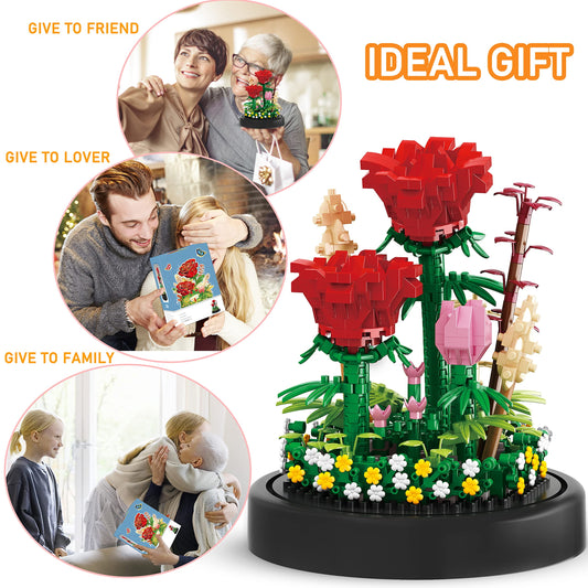 593 PCS Flower Rose Bouquet Building Kit DIY Flowers Toys Gift Bonsai Tree Sets with Cover Botanical Collection Building Blocks Bricks Mother'S Day Gift